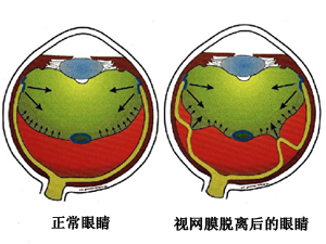 视网膜脱落会导致患者视力下降,严重者可导致视力丧失,甚至眼球萎缩。许多眼底病的共同特点玻璃体混浊、增殖,视网膜变性、出现裂口,终视网膜脱落,使眼内的防水引流过快,视网膜营养丧失,视细胞变性坏死,视功能减退甚至丧失,终使眼球萎缩,不得不摘除眼球。